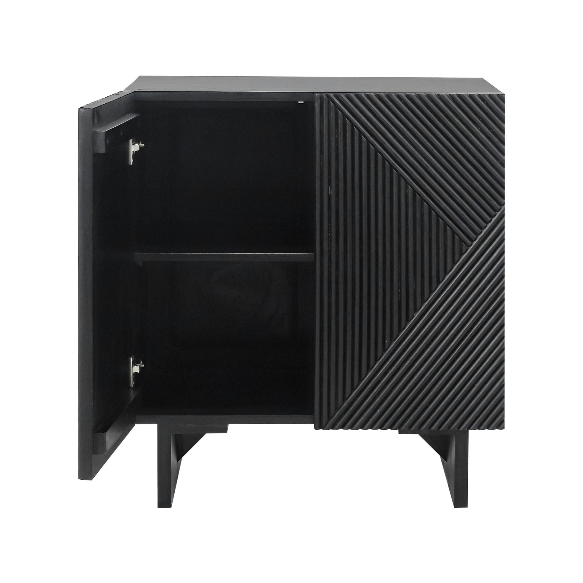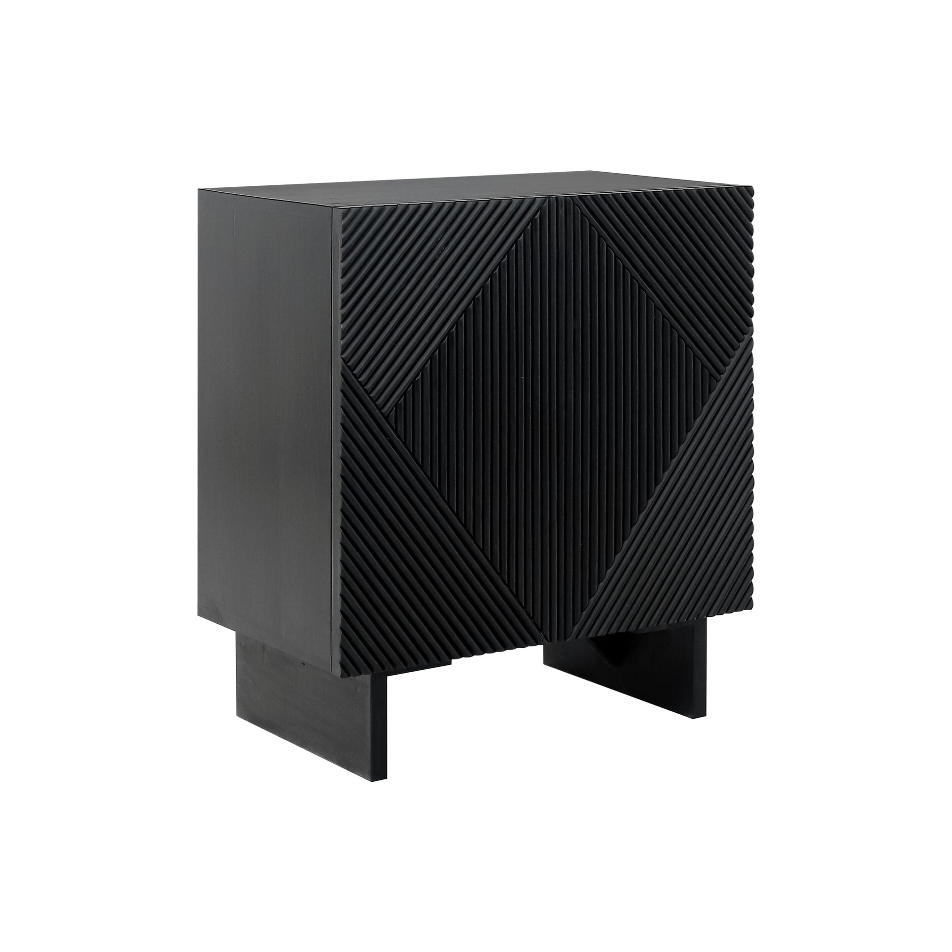 This 2-door cabinet features a sleek design with wooden slats pattern, adding texture and character to any room. It offers ample storage space while maintaining a clean, modern look. Perfect for organizing essentials in living rooms, dining areas, or hallways, this cabinet blends functionality with stylish craftsmanship. 100% ethically crafted in Indonesia.
