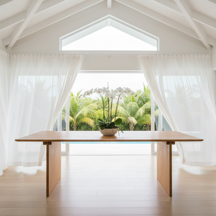 Teakwood is naturally resistant to moisture, pests, and wear, ensuring durability for years to come. The minimalist yet refined design complements both contemporary and classic interiors, while the spacious tabletop provides ample room for daily use or special gatherings.