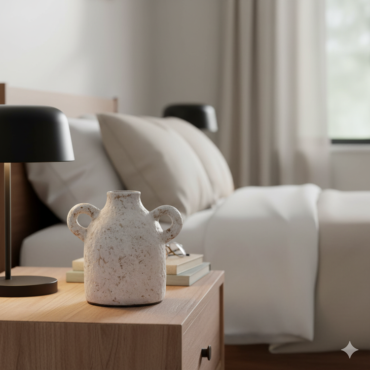 Designed with distinct, decorative handles on either side, this vase offers both visual interest and a nod to classic amphora shapes, reimagined for contemporary interiors. Its rustic appeal makes it an ideal complement to a range of decor styles, including Farmhouse, Boho, Mediterranean, Coastal, and Traditional settings.